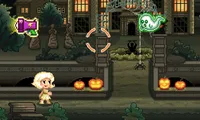 Using your mouse, click on the ghosts, spiders, witches, and other scary monsters that appear, to make them disappear. You need to guide the characters through the levels and do not let any creature touch them. Some monsters will throw things at you, so be aware of them and click to make them zap too.